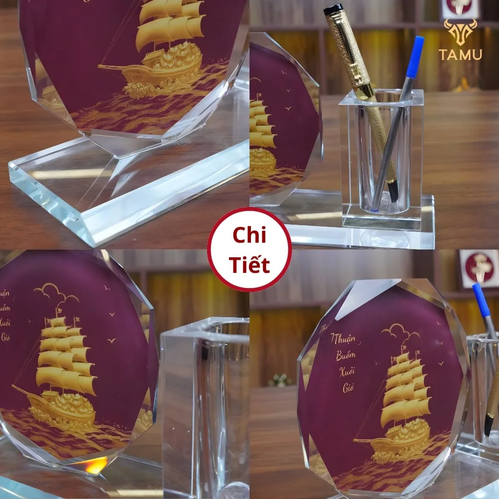 Cúp Pha Lê Để Bàn Kèm Ống Cắm Bút Thuận Buồm Xuôi Gió