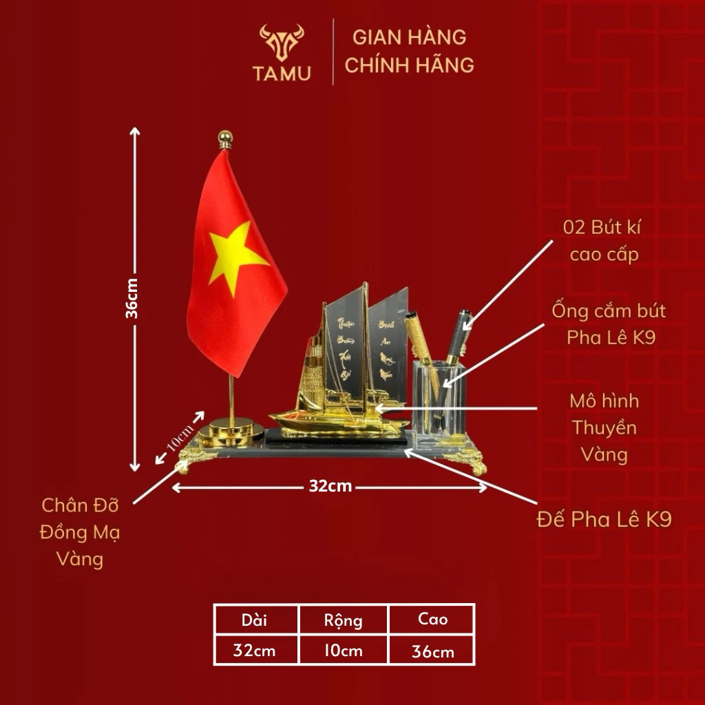 HỘP CẮM BÚT DOANH NHÂN MÔ HÌNH THUYỀN BUỒM MẠ VÀNG CAO CẤP – CÓ QUỐC KỲ/ĐẢNG KỲ – TẶNG KÈM BÚT KÝ